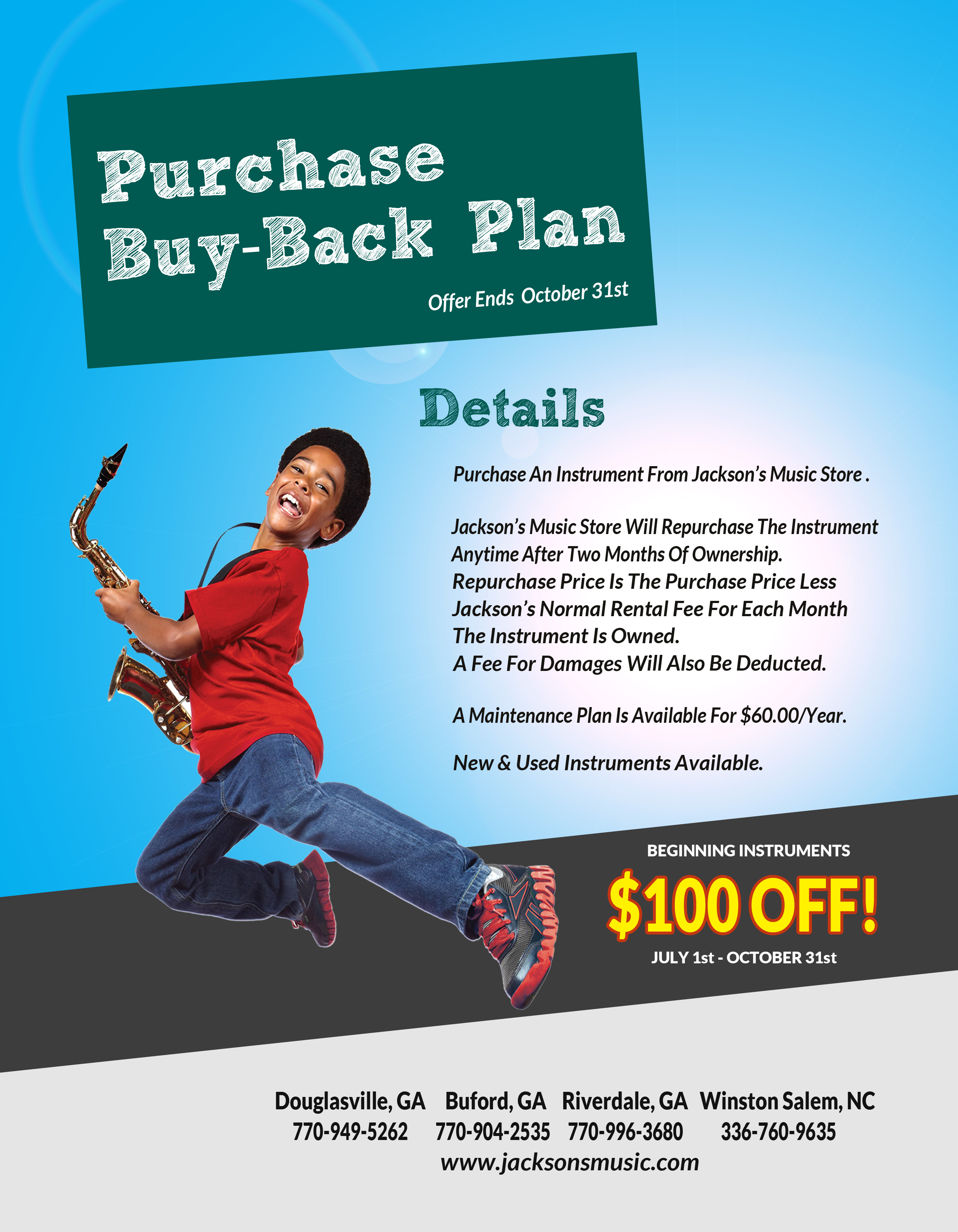 Jackson’s also offers a “PURCHASE BUY-BACK PLAN” that provides even greater savings on musical instruments.